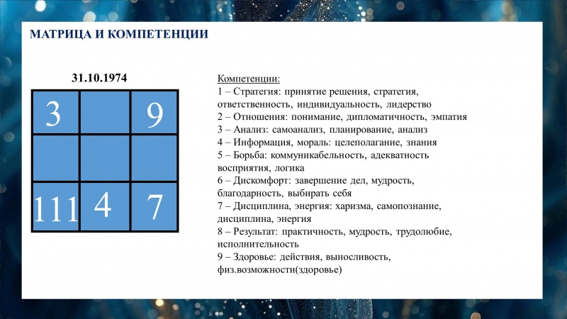 8. Таланты: Сильные стороны и компетенции, данные от рождения (матрица Сюцай).