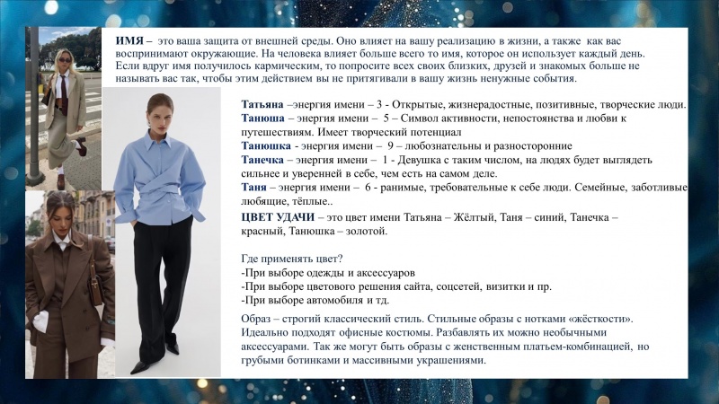 1. Стиль: Энергия имени, свой цвет и стиль в одежде.